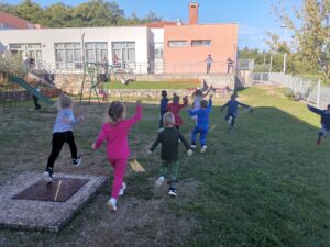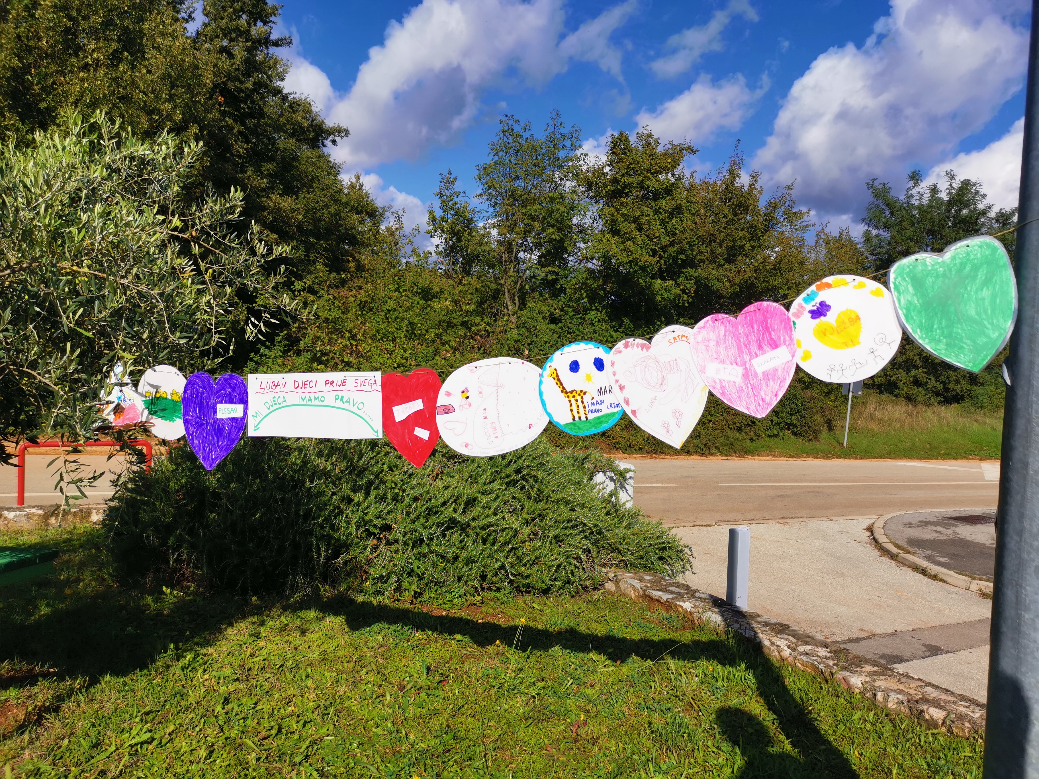 Prvi dan u Dječjem tjednu razgovarali smo o dječjim pravima. Zapamtili smo da imamo pravo na igru, na trčanje, vježbanje, plesanje, skakanje. Mi smo vrlo aktivni pa nas baš veseli da je naše pravo da takvi i budemo. Imamo pravo i na crtanje koje jako volimo, ali i na spavanje a znamo da je spavanje zdravo. Nakon razgovora izrađivali smo crteže različitih oblika s porukama o našim pravima i izložili ih ispred vrtića. Bilo nam je važno da ih i roditelji i ostali prolaznici mogu vidjeti.
