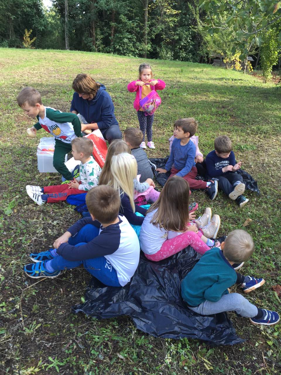 Ubrzo nakon doručka u utorak započeli smo pripreme za odlazak u šumu. Spakirali smo salvete, voće, panine, piće, paštete i ceradu da možemo sjesti i uživati na jesenskom suncu. Doživljaj je bio nezaboravan, skupili smo žireve, lješnjake, lišće, uspoređivali koru drveća, visinu i debljinu stabala, a najzanimljiviji je bio piknik. Vrijeme za povratak u vrtić ubrzo je došlo, a mi smo zaželjeli da se piknik što prije ponovi.