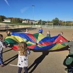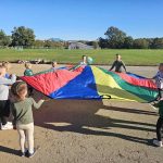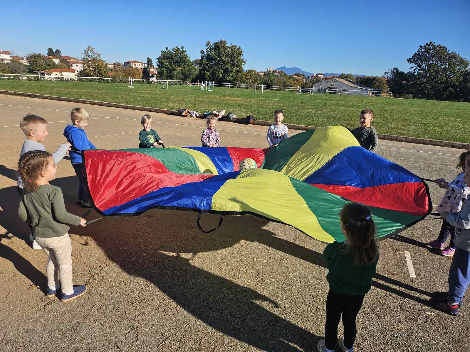 Započeli smo igrom sa šarenim padrobanom, pokušavajući zajedno zadržati lopte unutar njega – nije bilo lako, ali je bilo jako zabavno!