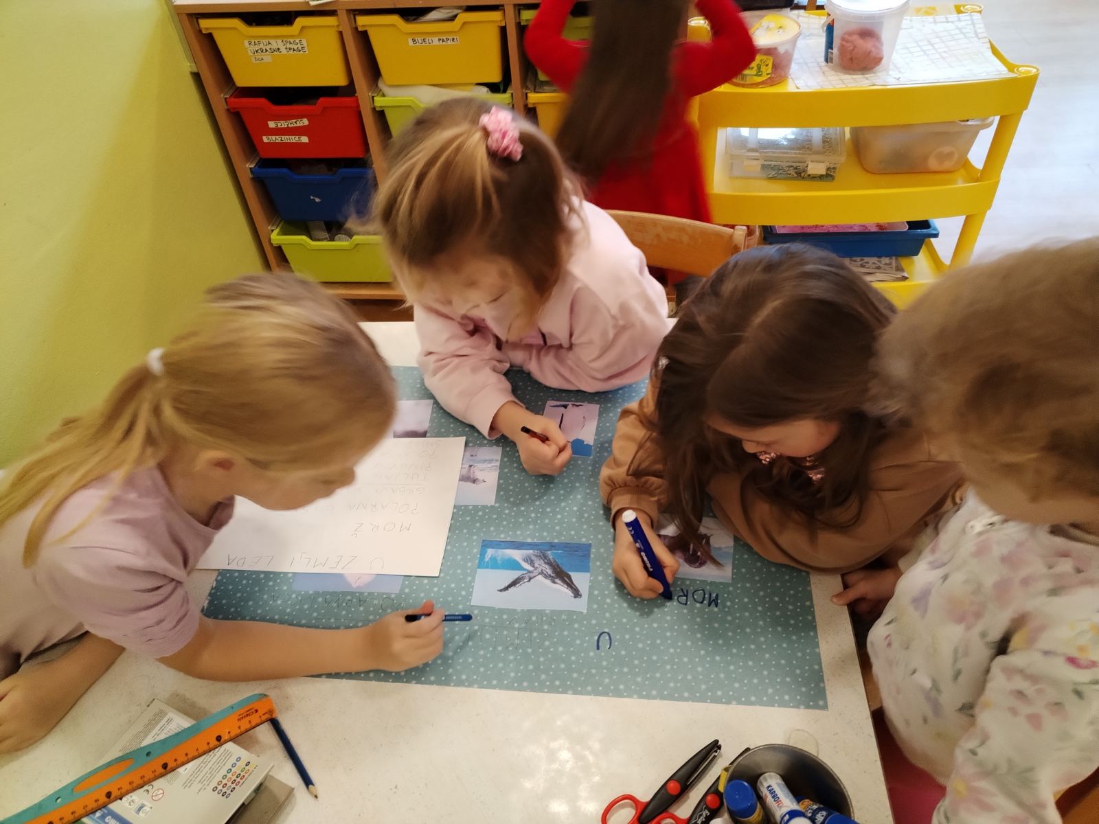 Uz raznovrsne druge aktivnosti u projekt su integrirane i aktivnosti lijepljenja, rezanja i izrezivanja oblika škarama kroz koje djeca vježbaju preciznost pokreta, koordinaciju oko–ruka, jačaju finu motoriku šake i prstiju, te razvijaju strpljenje i koncentraciju. Samostalno izrađujući tematske plakate razvijaju predčitalačke i predmatematičke vještine, obogaćuju rječnik te uče slijediti upute, dovršavati započete zadatke i surađivati s drugima.