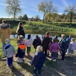 Po povratku u vrtić, našu je pažnju privukla obližnja lokva. Znatiželjno smo joj prišli i pokušali otkriti skriva li se u njoj možda žaba. Iako je nismo vidjeli, razgovarali smo o životu žaba, vodi i prirodi koja nas okružuje.