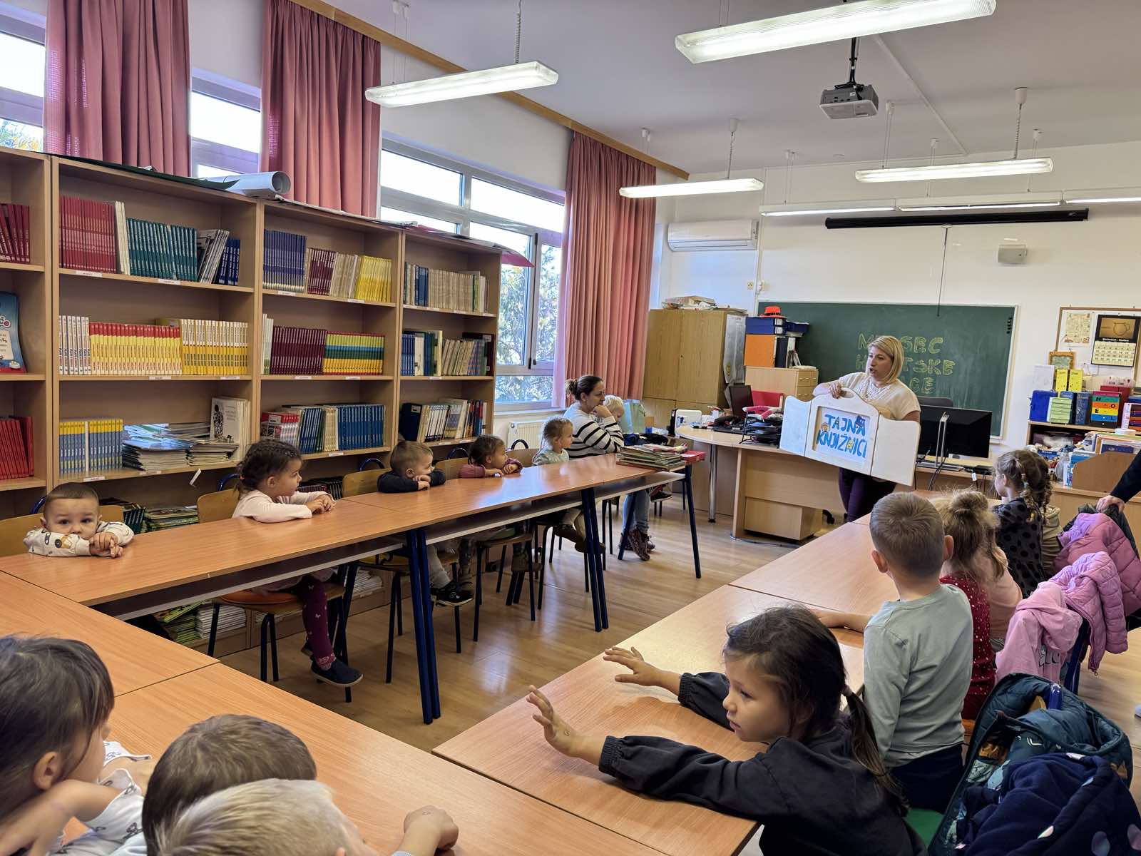 Tamo nas je srdačno dočekala knjižničarka Danijela, koja nam je pokazala svoju knjižnicu, mnoge zanimljive knjige te nam objasnila što se sve u knjižnici radi. Ispričala nam je prekrasnu priču o Tajni knjižnice, pokazala nam najveću i najdeblju knjigu koju ima te nas iznenadila darom – dvije slikovnice koje su izradili učenici škole.